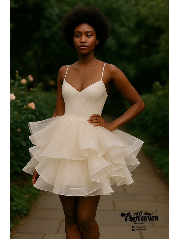 Step into the spotlight with our latest prom-ready showstoppers from 7th Heaven ✨ The soft beige tiered tulle mini dress is the ultimate pick for junior prom or any glam night out—sweet, playful, and full of flirty flair with its structured bodice and dreamy layered skirt. For a bold and breathtaking entrance, our royal blue fitted gown brings drama with a sheer corset bodice and cascading ruffles that command attention with every step. Whether you’re keeping it cute or serving red carpet energy, these dresses are made to turn heads and steal hearts 💃